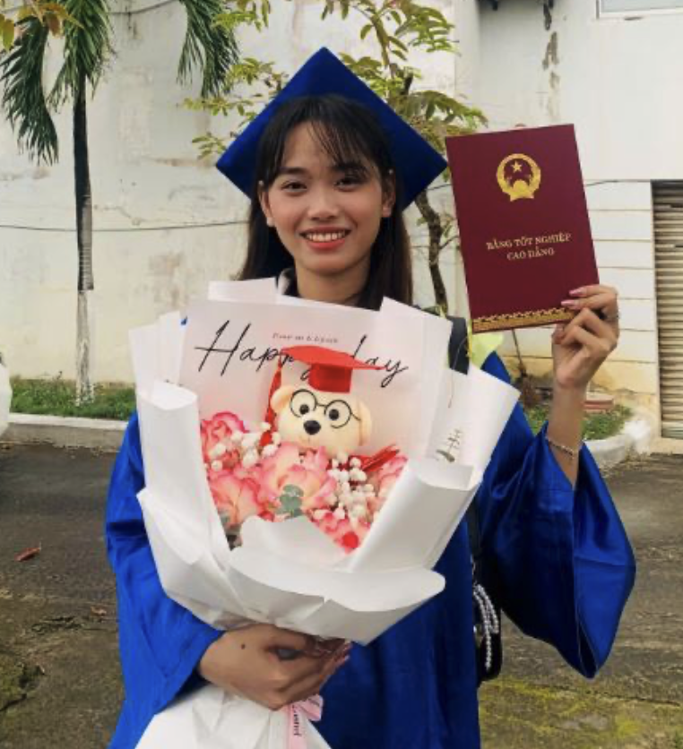 | Because of this opportunity, I can continue pursuing my dream of graduating from Danang College of Commerce with a degree in Commercial Business. This support has brought hope not only to me, but also to my entire family. |